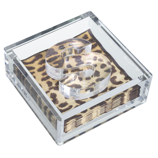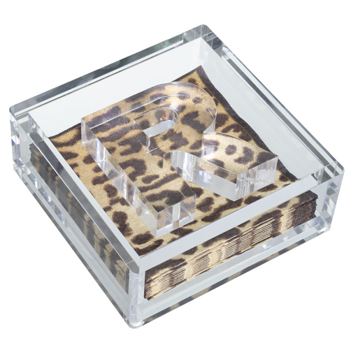 CosreOur beautiful, modern clear napkin holder with a separate Lucite/Acrylic letter initial to hold the napkins in place. Choose your initial to person...